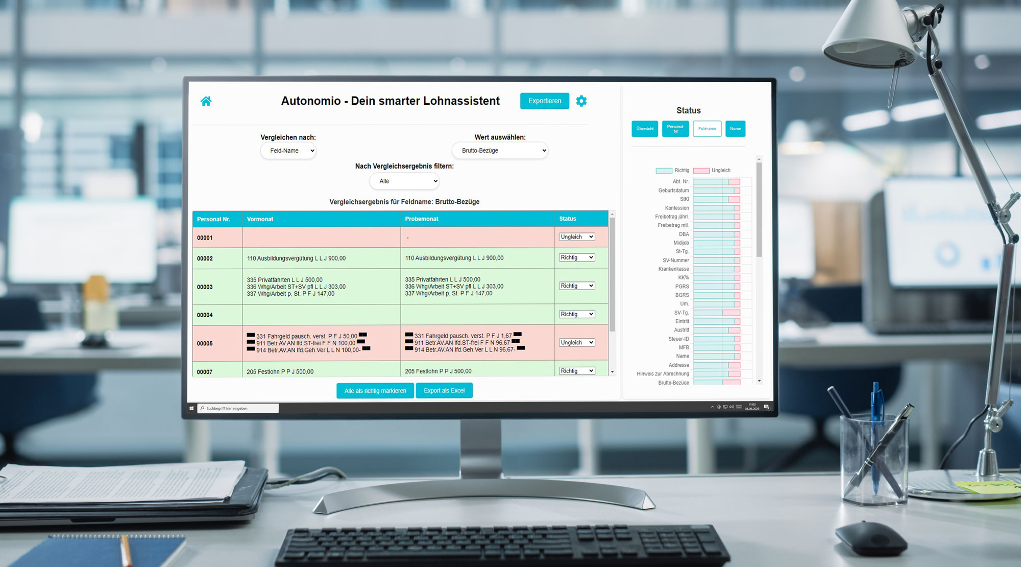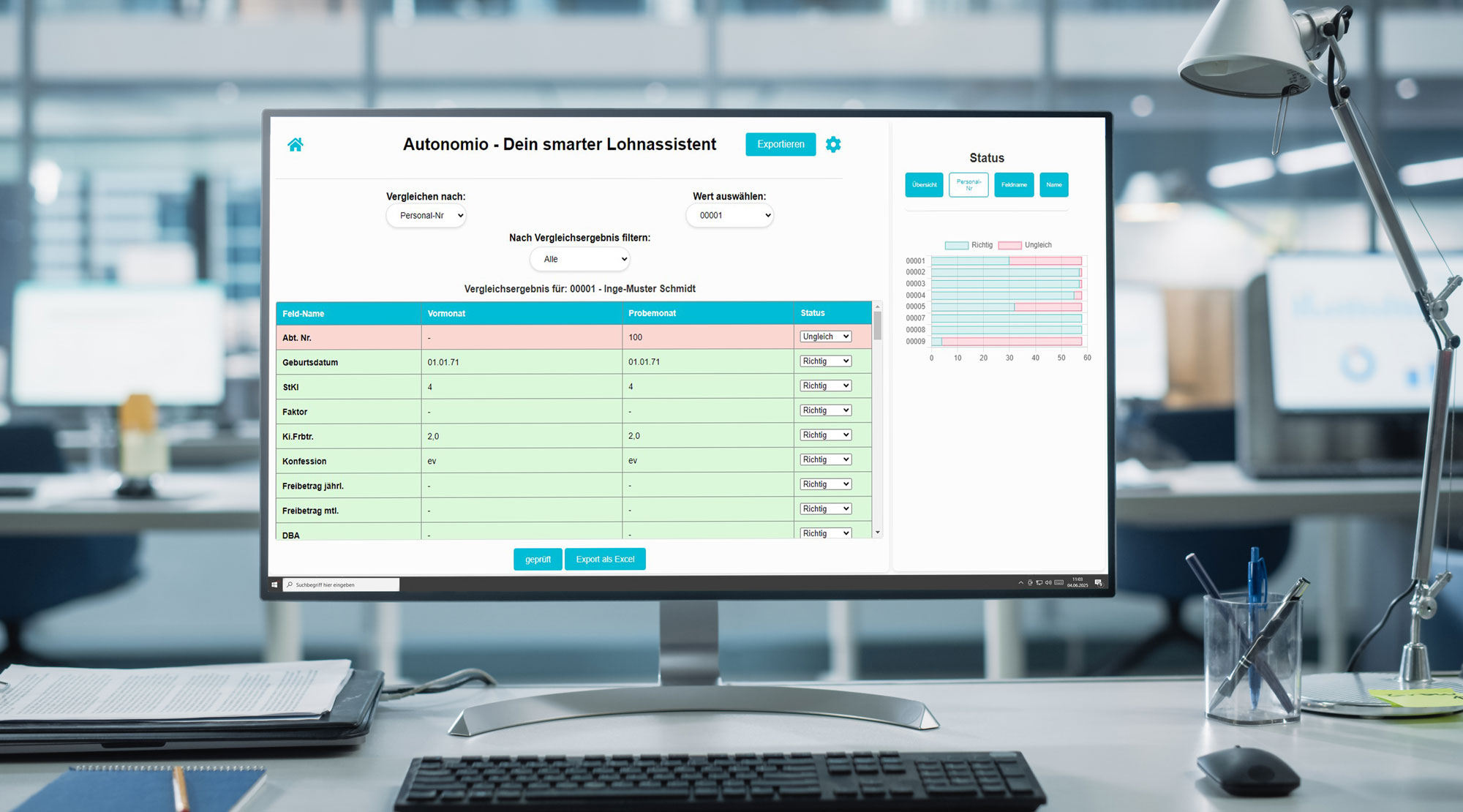 Die Lohnabrechnungs-Software Autonomio unterstützt Sie, Echt- und Probeabrechnungen aus DATEV Lohn&Gehalt